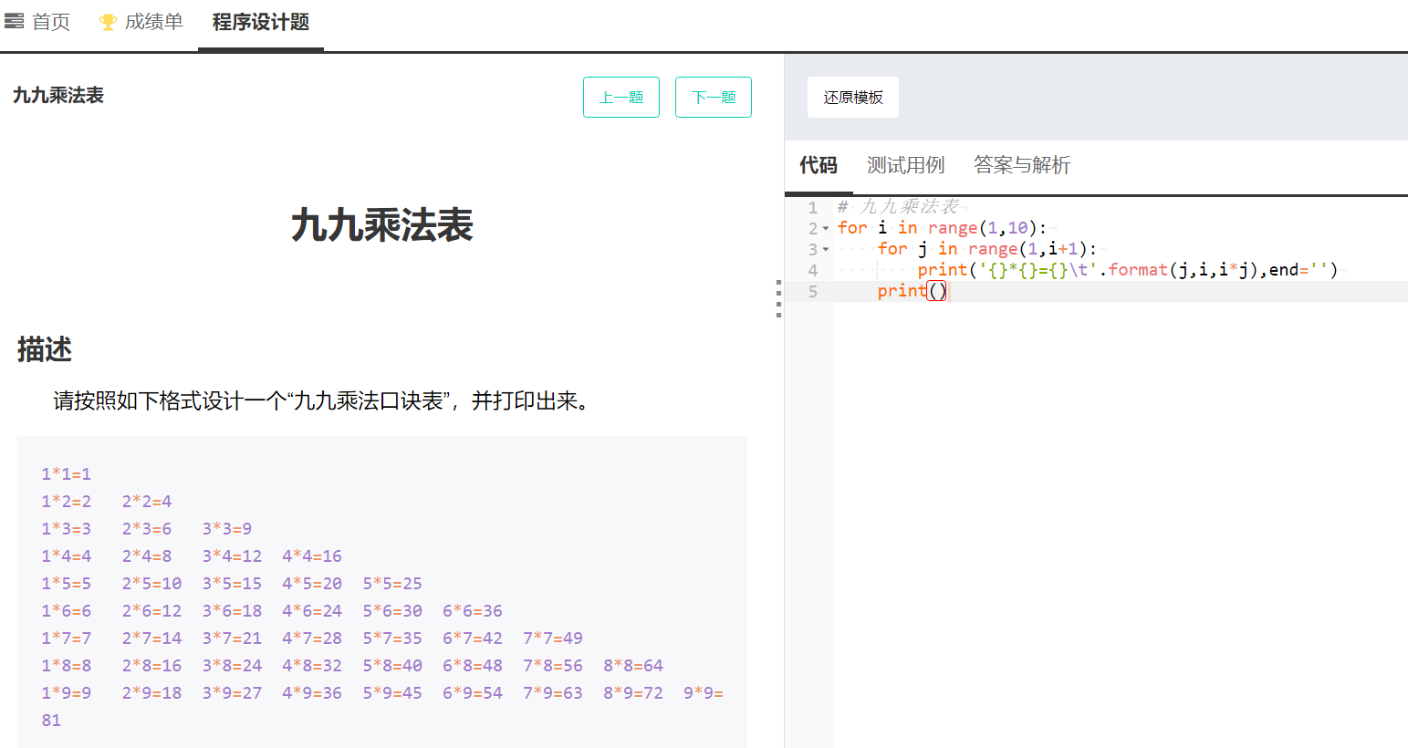 2)九九乘法表
