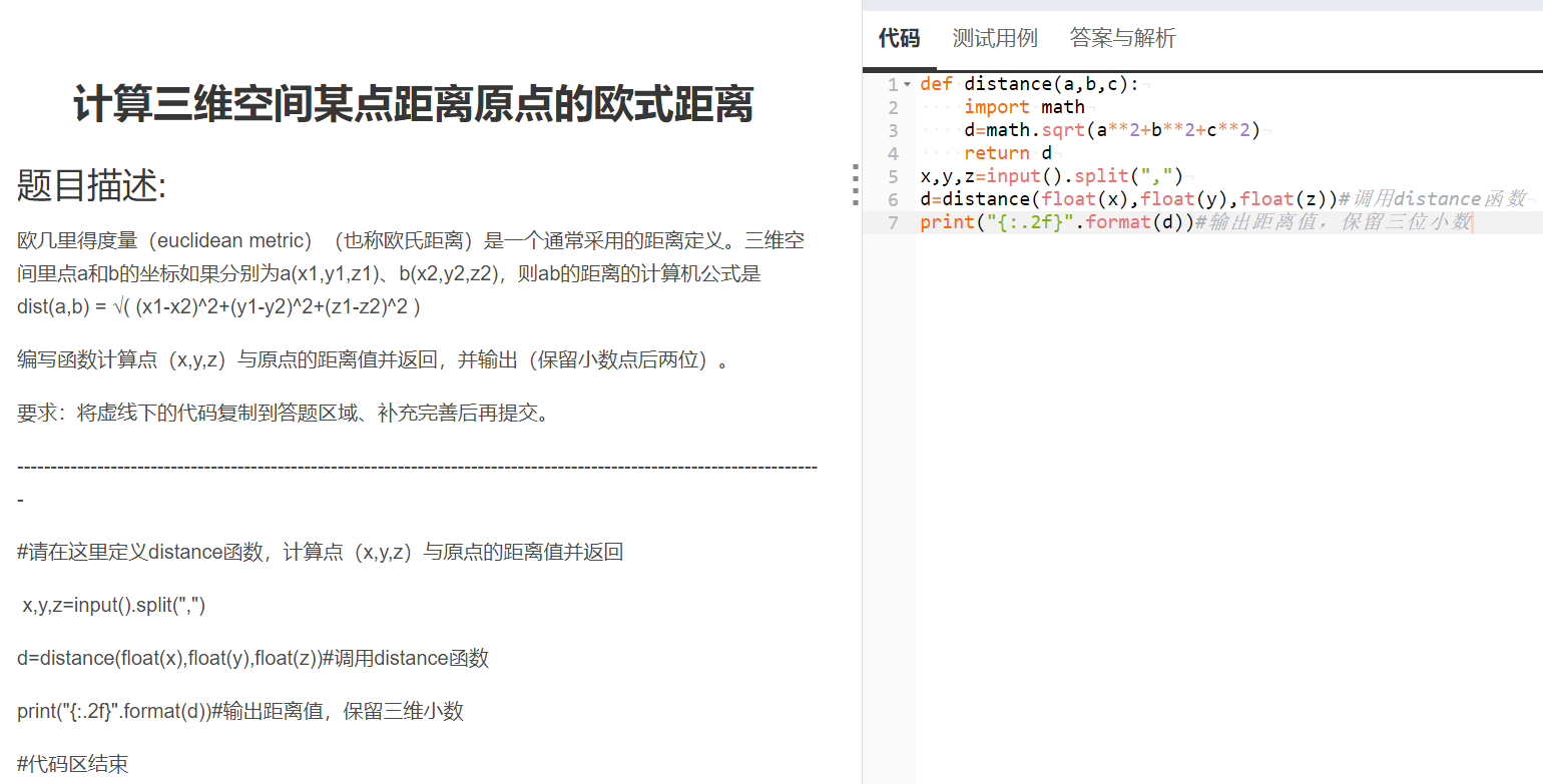 d=distance(float(x),float(y),float(z))#调用distance函数