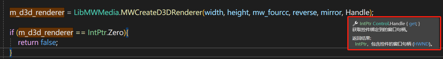 就是将每帧的数据显示到Handle句柄所在的Form上。
