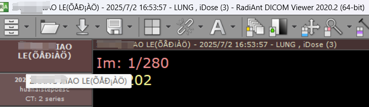 开发的CT软件,从CT的Dicom文件中读取到的患者姓名、性别出现了乱码。