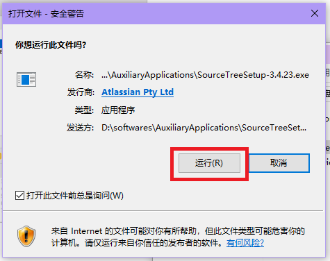 C:\Users\<user>\AppData\Local\SourceTree,若手动移动文件会导致更新失败或工具异常 - 打开安装向导开始安装.