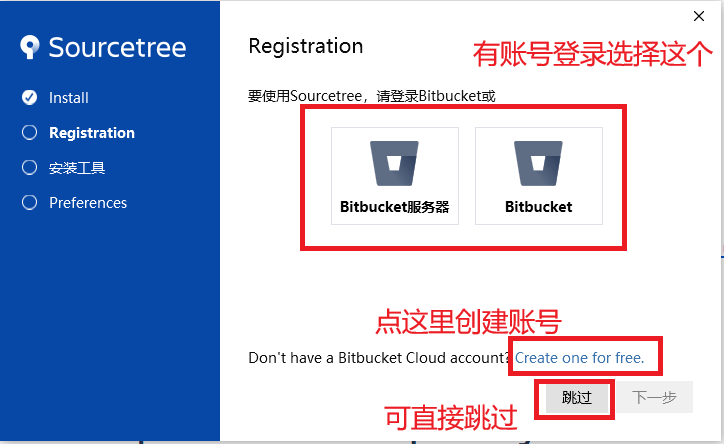 - 是否有Bitbuckte账号,有的话可以登录,没有就跳过