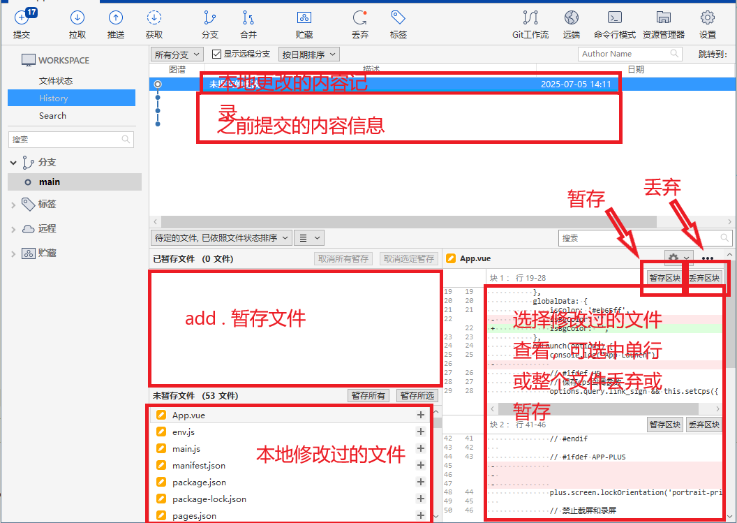 - 添加完成后,双击就可以查看文代码状态和提交信息