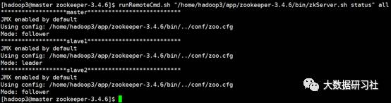 [hadoop3@master app]$ runRemoteCmd.sh "/home/hadoop3/app/hadoop/sbin/hadoop-daemon.sh start journalnode" all