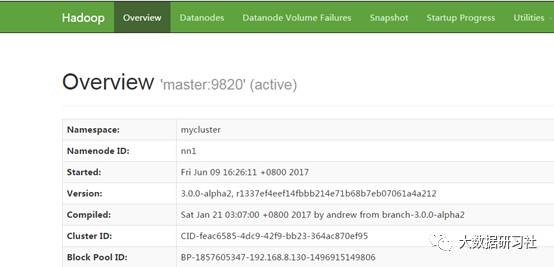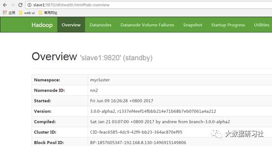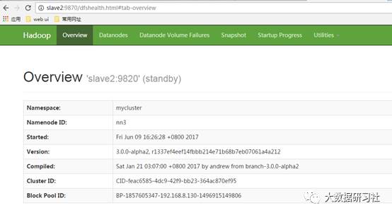 7.1.11.1查看HDFS Web界面,这里配置的master slave1 slave2节点都为namenode。