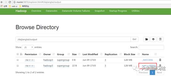 [hadoop3@master hadoop]$ bin/hdfs dfs -cat /dajiangtai/output/*