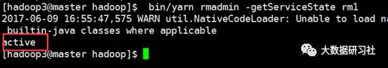 [hadoop3@master hadoop]$ bin/yarn --daemon start resourcemanager