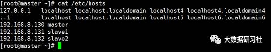 为了便于集群的操作,所有节点的hosts文件需要配置静态ip与hostname之间的对应关系。