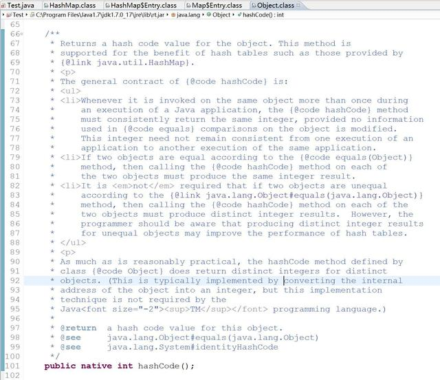 在讨论这个问题前,我们先看下Object类中hashCode方法和equals方法。