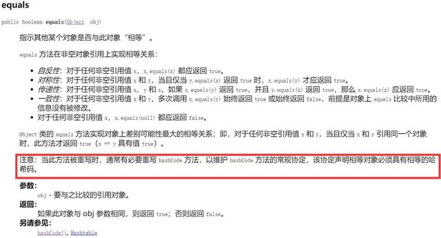 ② 如果根据 equals(Object) 方法,两个对象是相等的,那么对这两个对象中的每个对象调用 hashCode 方法都必须生成相同的整数结果。
