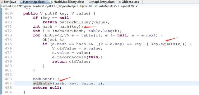 此时hashCode方法的作用就体现出来了,当集合要添加新的对象时,先调用这个对象的hashCode方法,得到对应的hashcode值,实际上在HashMap的具体实现中会用一个table保存已经存进去的对象的hashcode值,如果table中没有该hashcode值,它就可以直接存进去,不用再进行任何比较了;如果存在该hashcode值, 就调用它的equals方法与新元素进行比较,相同的话就不存了,不相同就散列其它的地址,所以这里存在一个冲突解决的问题,这样一来实际调用equals方法的次数就大大降低了,说通俗一点:Java中的hashCode方法就是根据一定的规则将与对象相关的信息(比如对象的存储地址,对象的字段等)映射成一个数值,这个数值称作为散列值。