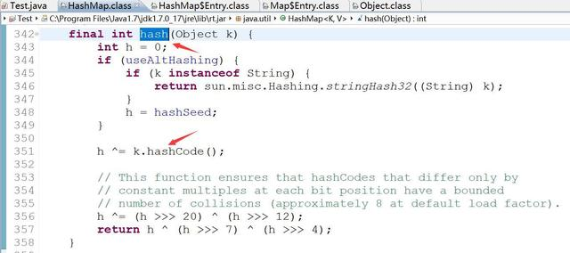 hash方法会调用对象的hashCode()方法: