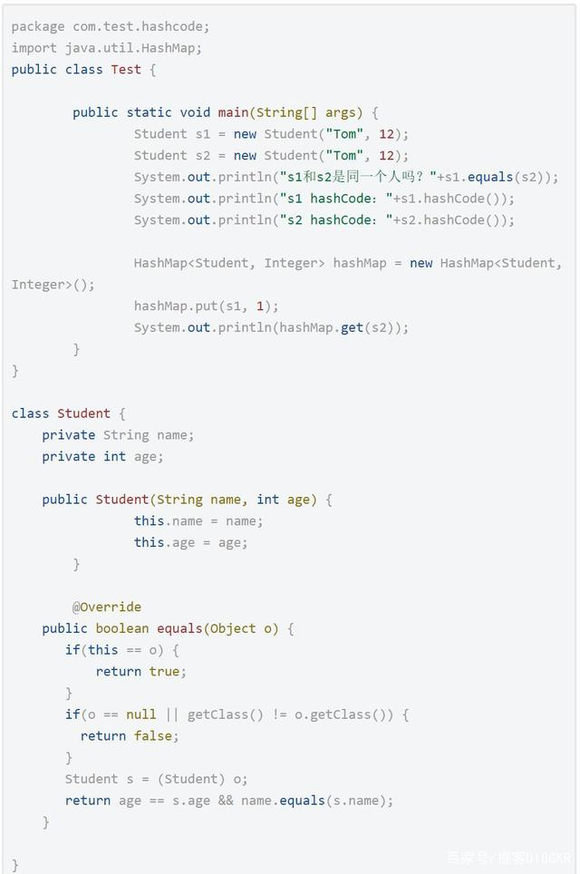 接下来我们重写下Student类的hashCode方法,让equals方法和hashCode方法始终在逻辑上保持一致性。