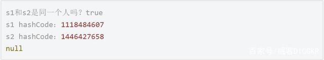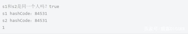 重新运行,输出结果如下,s1和s2的hashCode相同了,hashMap.get(s2)得到了1。