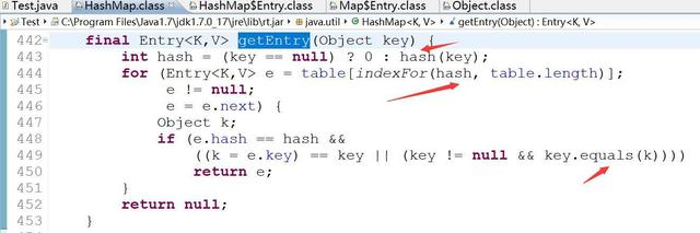 我们看下hashMap的get方法,先获取key的hashCode,由于s1和s2的hashCode不同,所以hashMap.get(s2)得到的是null。
