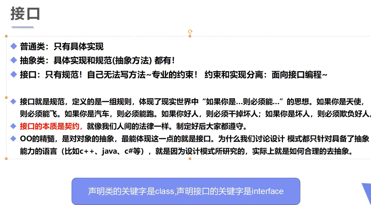 接口定义的方法都为抽象方法 -->public abstract +方法名