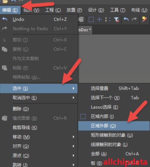 1.在编辑菜单栏下,“选中”→“区域外部”,快捷键“SO”