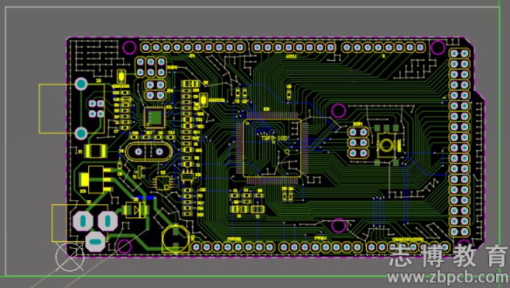 2.这时候鼠标会变成一个十字光标,只需要在板子画一个区域,AD软件会自动选中你所画区域外部的所有对象。