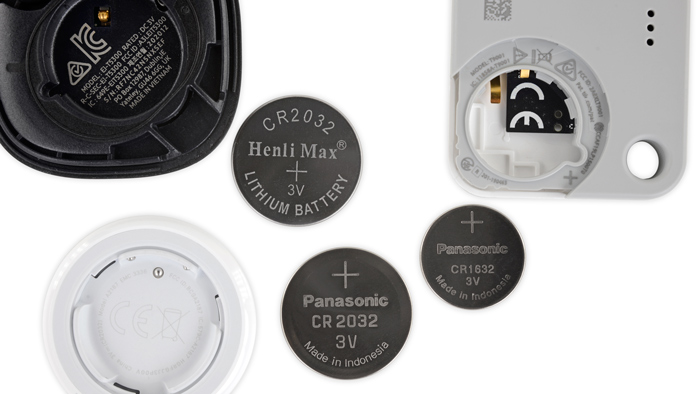 对比三款追踪器的电池,我们可以看到,苹果AirTag的电池采用的是松下CR2032规格的纽扣电池,电压为3V,制造于印度尼西亚;三星的SmartTag采用的是常州市宇峰电源有限公司旗下Henli Max品牌CR2032规格的纽扣电池,电压为3V;Tile Mate同样采用的是体积更小的CR1632规格的松下纽扣电池,电压也是3V。根据标准纽扣电池的规格来看,所有的都是锂电池,其中苹果AirTag和三星SmartTag的20毫米直径的纽扣电池都有0.66 Wh的电池容量,而Tile Mate的16毫米直径的纽扣电池只有约0.39 Wh电池容量。