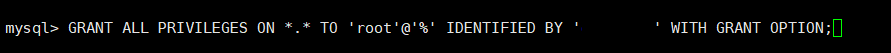 GRANT ALL PRIVILEGES ON *.* TO 'root'@'%' IDENTIFIED BY '密码' WITH GRANT OPTION;