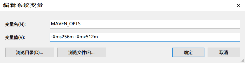 - 配置MAVEN_OPTS = -Xms128m -Xmx512m;不是必须的,但是可以防止内存溢出,建议配置一下