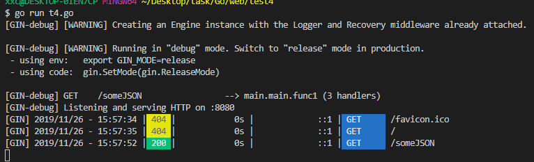 1 package main 2 3 import ( 4 "net/http" 5 6 "github.com/gin-gonic/gin" 7 ) 8 9 func main() { 10 r := gin.Default() 11 12 r.GET("/someJSON", func(c *gin.Context) { 13 data := map[string]interface{}{ 14 "lang": "Golang", 15 "tag": "<br>", 16 } 17 c.AsciiJSON(http.StatusOK, data) 18 }) 19 20 r.Run(":8080") 21 }