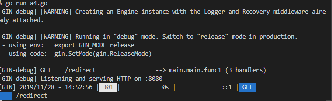 1 package main 2 3 import ( 4 "net/http" 5 6 "github.com/gin-gonic/gin" 7 ) 8 9 func main() { 10 r := gin.Default() 11 12 r.GET("/redirect", func(c *gin.Context) { 13 c.Redirect(http.StatusMovedPermanently, "http://www.bing.com/") 14 }) 15 r.Run(":8080") 16 }