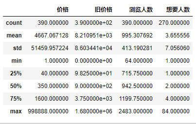 1 #数据异常值处理 2 taoertao.describe()