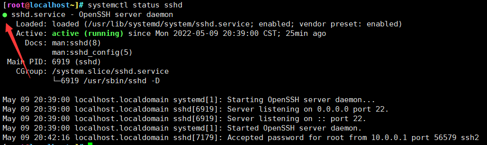 # CentOS 7: systemctl status sshd # CentOS 6: [root@localhost ~]# /etc/init.d/sshd status openssh-daemon (pid 1508) is running... -