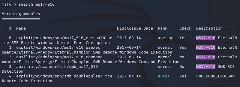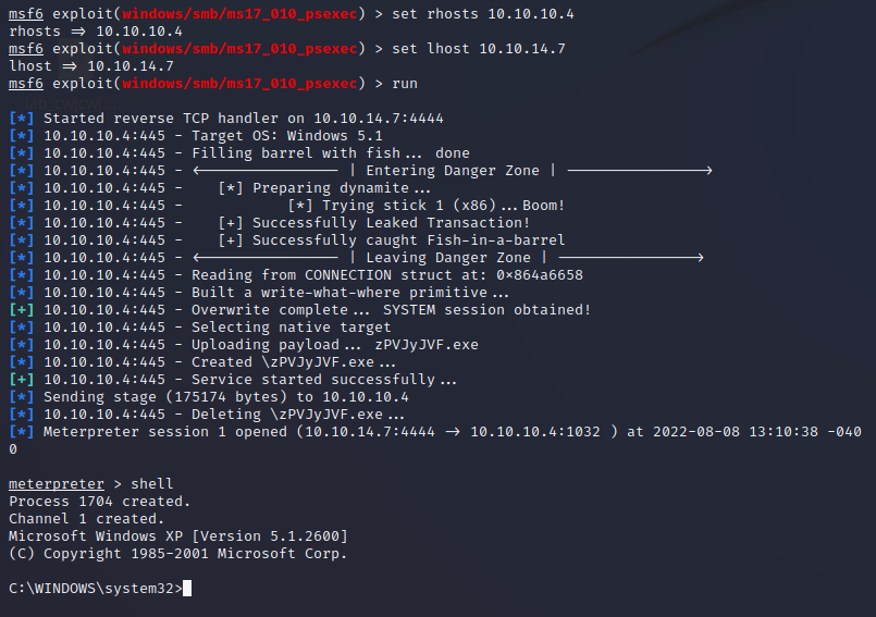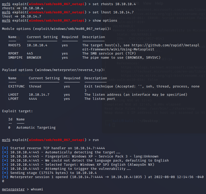 设置好rhosts和lhost(lhost为VPN地址):set rhosts 10.10.10.4