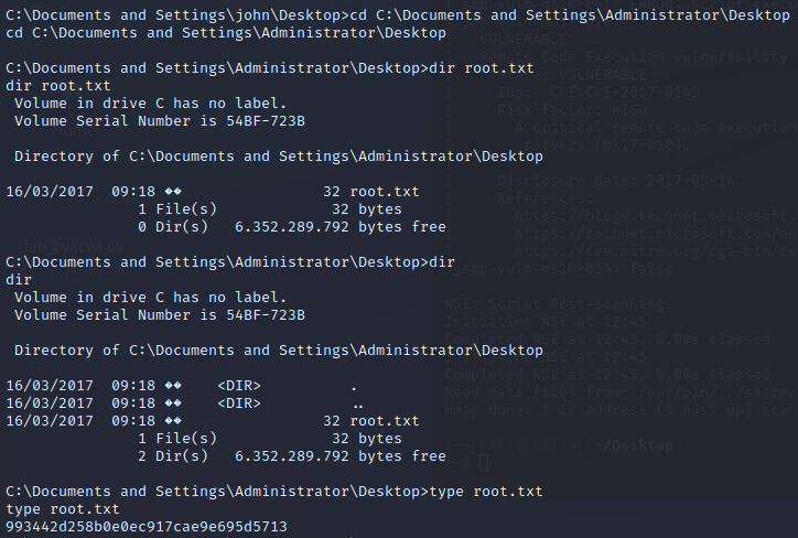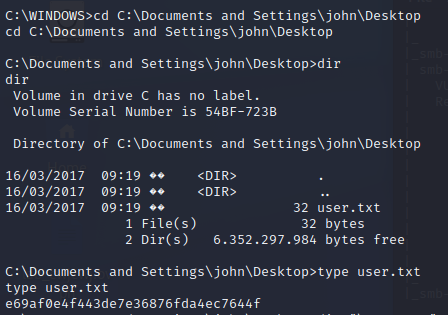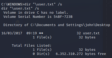 使用命令行查找user.txt和root.txt:dir "\user.txt" \s