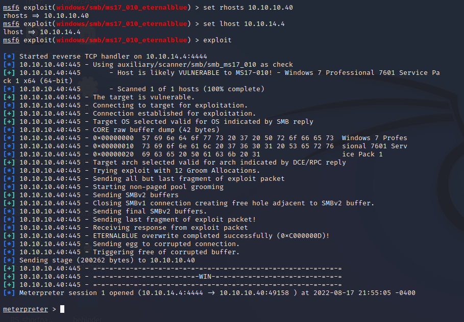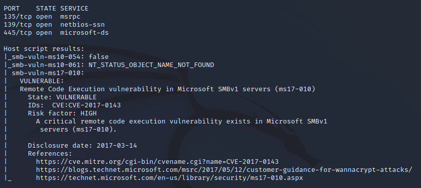 使用nmap内置脚本再扫一下:nmap --script=vuln -v -p 135,139,445 10.10.10.40