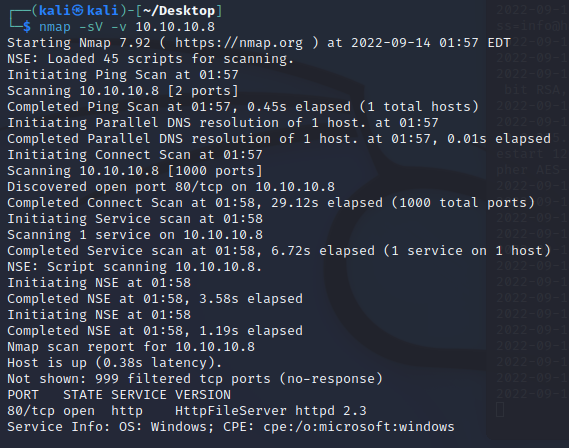 nmap扫描一下:nmap -sV -v 10.10.10.8