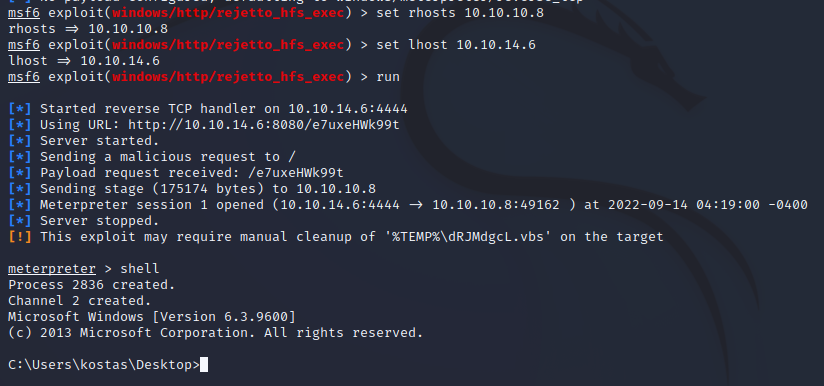 查了一下hfs2.3版本存在漏洞CVE-2014-6287,使用metasploit进行测试