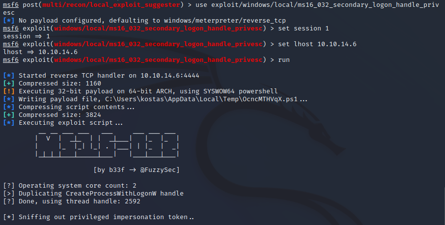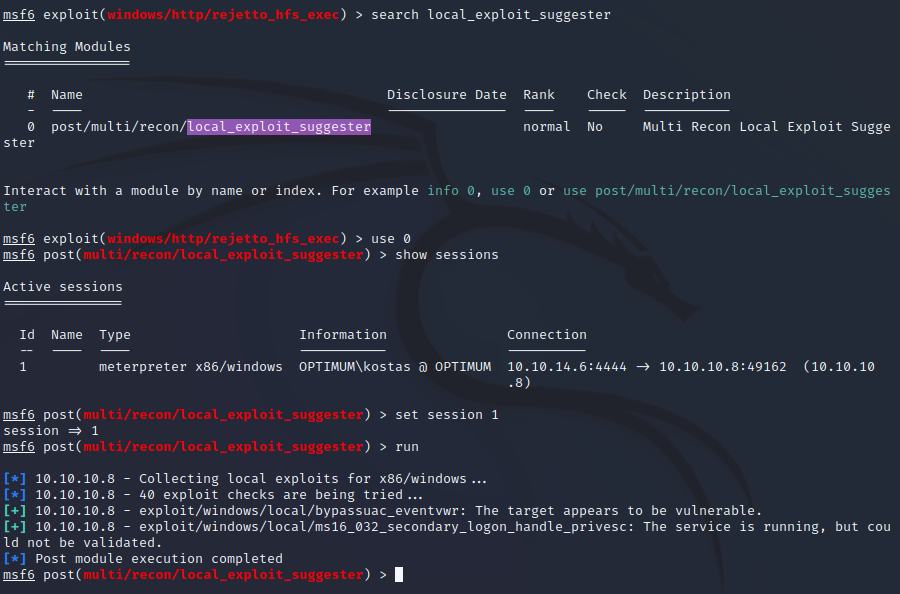 我们ctrl+z挂起session,使用local_exploit_suggester扫描一下漏洞