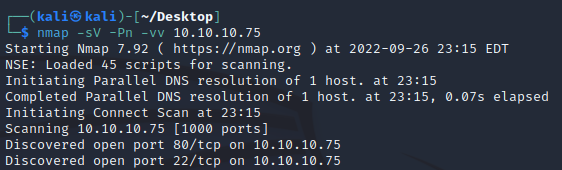使用namp扫描machine:nmap -sV -Pn -vv 10.10.10.75