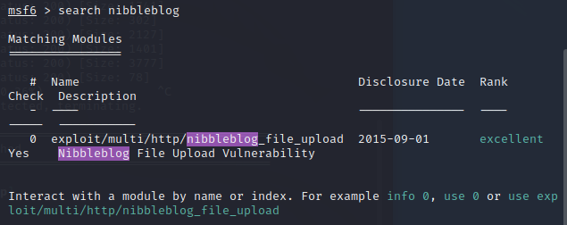 通过查询知道这是一个博客的网页,metasploit查询下这个博客有没有利用的exp