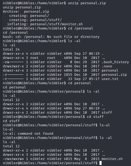 cd进入stuff目录(这里需要unzip解压personal.zip一下才会有目录)