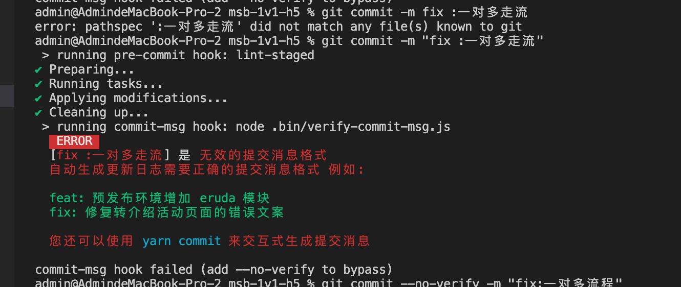 后用了 git commit --no-verify -m "备注" 成功提交