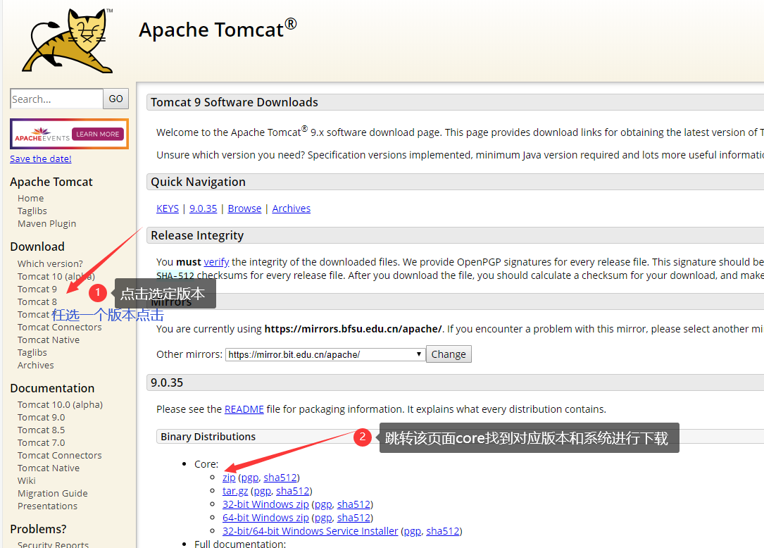 Tomcat官网下载地址链接(http://tomcat.apache.org/)