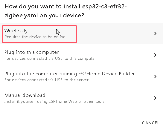 12、移除GND到GPIO9的连接,复位ESP32,选无线