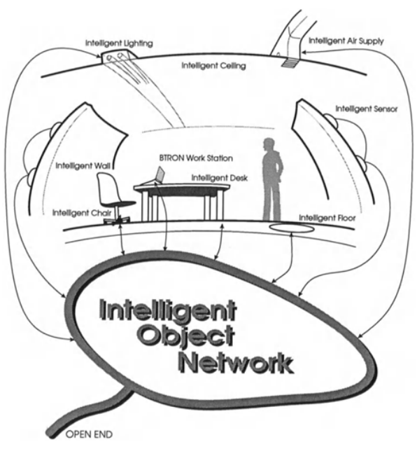 第一座TRON智能住宅基于1987年提出的高功能分布式系统 (HFDS) 概念。该住宅于1989年在东京建成,该住宅占地333平方米,集成了约1000台计算机以及众多传感器和执行器,采用了物联网(IoT)的前身——高功能分布式系统(HFDS)的概念。