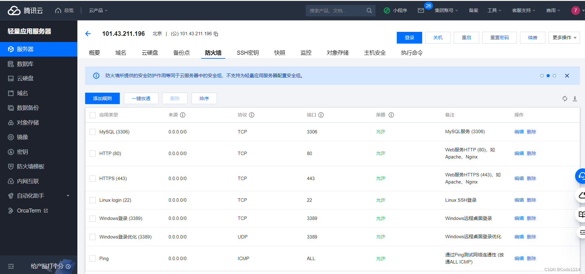 2.除了这个端口要放开之外,云服务器的系统防火墙端口也必须要放开(之前我是这个问题)