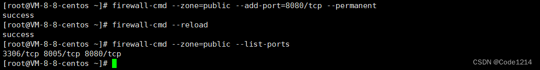firewall-cmd --zone=public --add-port=8080/tcp --permanent