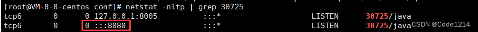 比如说,我们想知道tomcat是哪个端口,在2当中,已经知道了PID为38725(父进程),然后执行。可以看到他的端口号是8080。