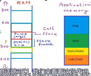 这张图中,内存大体被分为4个部分,code部分是用来储存程序的指令,static部分是用于储存静态变量和全局变量的,而stack也就是栈,在我的理解下,栈是用来储存函数的,函数从栈顶向下执行,每一个函数被分为一个个的栈帧,在函数执行完之后,栈帧会给自动删除。我觉得栈和heap也就是堆最大的区别就是,堆是一个我们可以自由分配的内存空间,我们可以根据需要来在堆中开辟内存(前提是不超过系统本身的设置)。而堆的内存是有限的,如果函数使用不当发生无限递归可能会导致栈溢出。所以堆就是后面动态内存分配的主角。