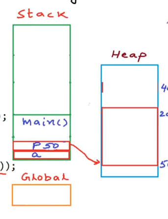 在栈中定义一个指针变量,让这个使用动态内存分配的函数在堆上开辟一个空间,让这个指针变量指向这块内存的首地址。