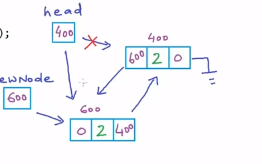 所以我这里又用一个临时结点来储存下一个结点的地址,然后再将当前结点的位置指向上一个结点,然后就把current的值赋给prev,把next的值赋给current,这样就可以有遍历的效果。然后在最后,current和next'的值全是NULL,将prev的值赋给head,这样head就变成了之前链表的尾部。也就是下面这个图。