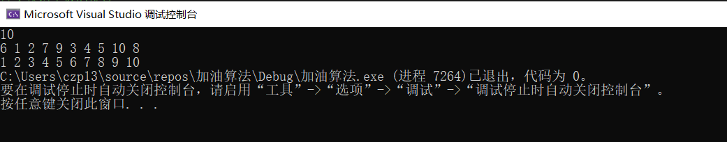 #include <stdio.h> int a[101], n;//定义全局变量,这两个变量需要在子函数中进行 void quicksort(int left, int right) {//这个循环 int i, j, t, temp; if (left > right) {//就是两个人相遇的情况 return; } temp = a[left];//temp中储存的是基准数 i = left; j = right; while (i != j) {//两个人不相遇的时候 //顺序很重要,先从右往左找 while (a[j] >= temp && i < j) { j--;//现在这个炜炜就是在小于temp的那个位置 } //阮阮再从左往右找 while (a[i] <= temp && i < j) { i++; } //交换两个数的位置 if (i < j) { t = a[j]; a[j] = a[i]; a[i] = t; } } //最后把基准数归位 a[left] = a[i]; a[i] = temp; //后面就是递归了 quicksort(left, i - 1);//这个是左边的递归 quicksort(i + 1, right);//这个是右边的递归 } int main() { int i, j; scanf_s("%d", &n); for (i = 1; i <= n; i++) { scanf_s("%d", &a[i]); } quicksort(1, n); for (int i = 1; i <= n; i++) { printf("%d ", a[i]); } return 0; }