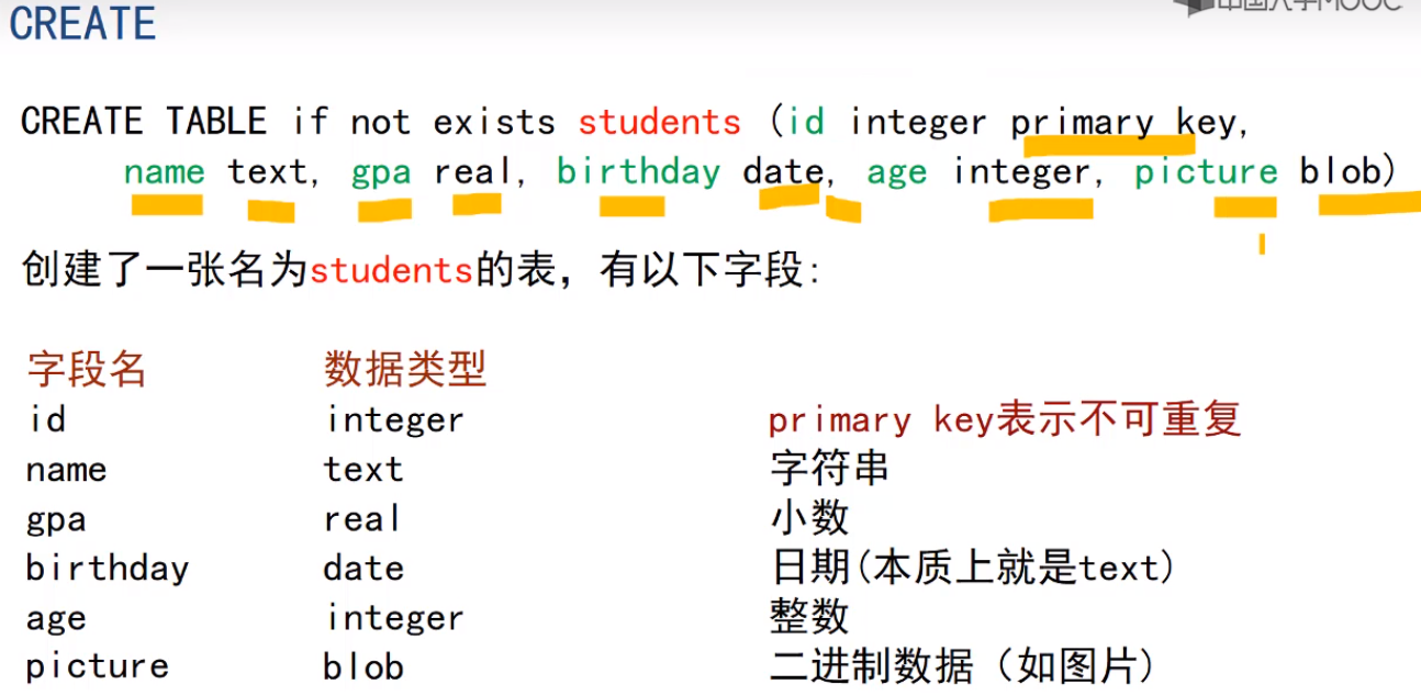 这个greate table就是在数据库里面创建了一张表,如果这张表不存在的话,就创建这张表,如果存在的话就忽略这段话。